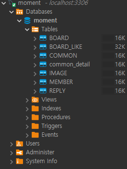 MySQL에서 사용할 Table을 정의합니다. 테이블 생성 구문은 ERDCloud를 활용하였습니다.