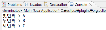 String result = "첫번째 > " + a + ", 두번째 > " + b;