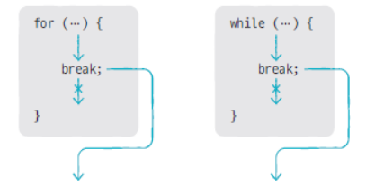 반복문(for, while, do-while)의 실행을 중지할 때 사용된다. 또한 swich문에서도 종료 용도로 쓰이고 있다. 주로 if문과 함께 사용하며, if 문과 함께 조건식에 따라 while, for문을 종료한다.